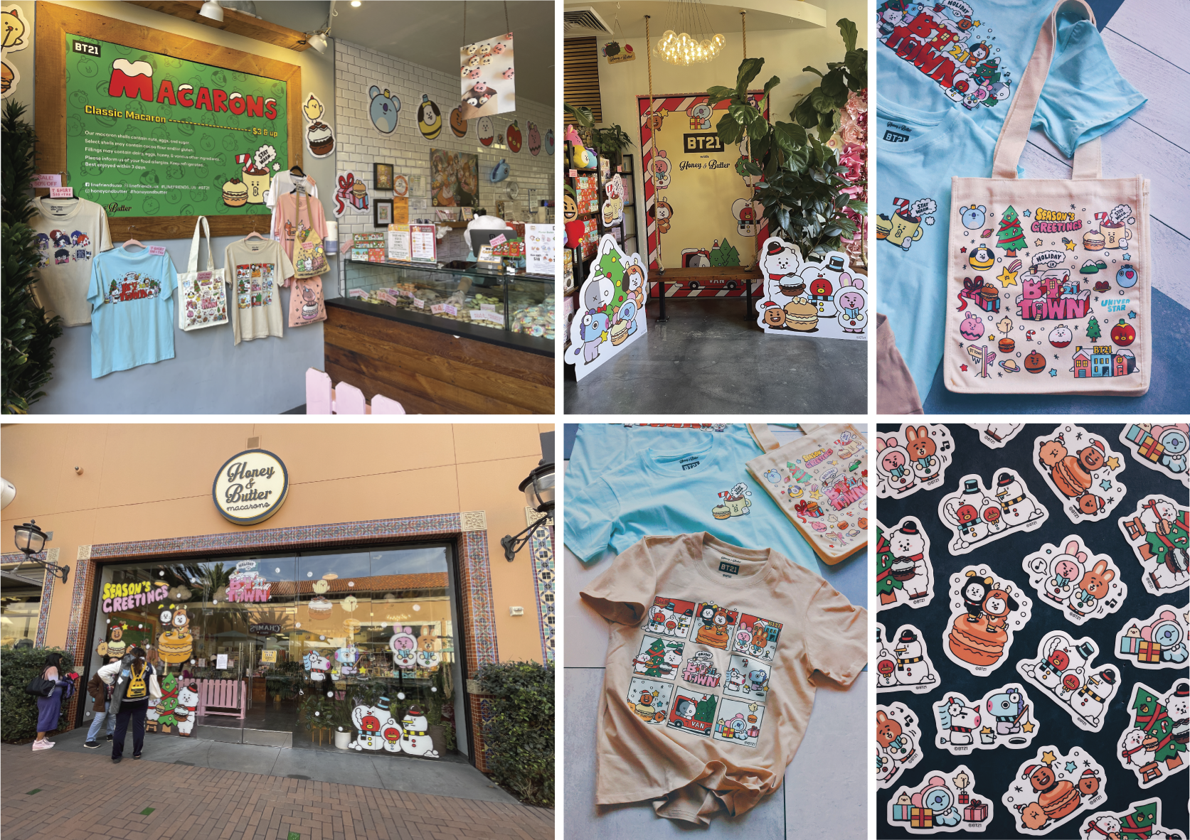 Objective: Lead creative development for a Honey & Butter holiday brand partnership, designing character-driven assets and merchandise that integrated our IP with the shop’s macaron flavors, delivering a cohesive retail experience across packaging, products, and in-store merchandise.